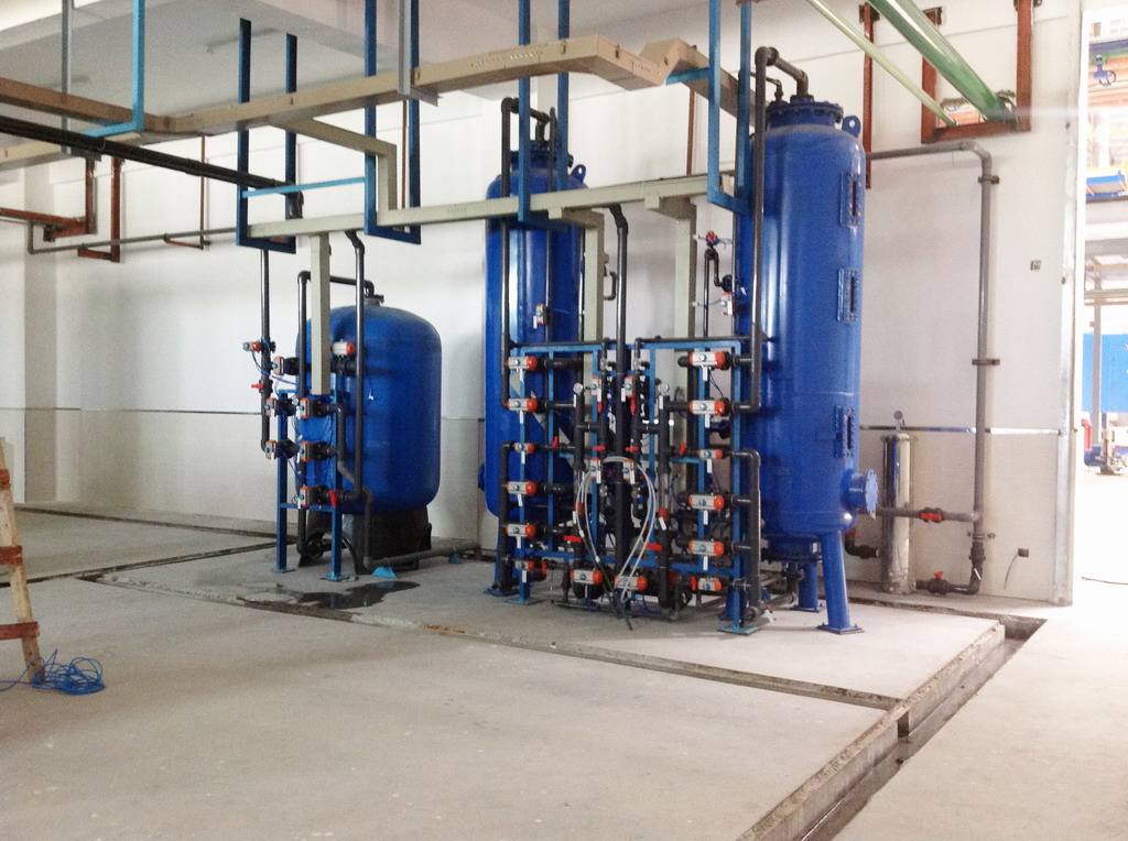 设备流程:原水→多介质过滤器→活性炭过滤器→精密过滤器→中间水箱→一级反渗透设备→ →纯水储水箱 →纯水增压泵→混床系统→
