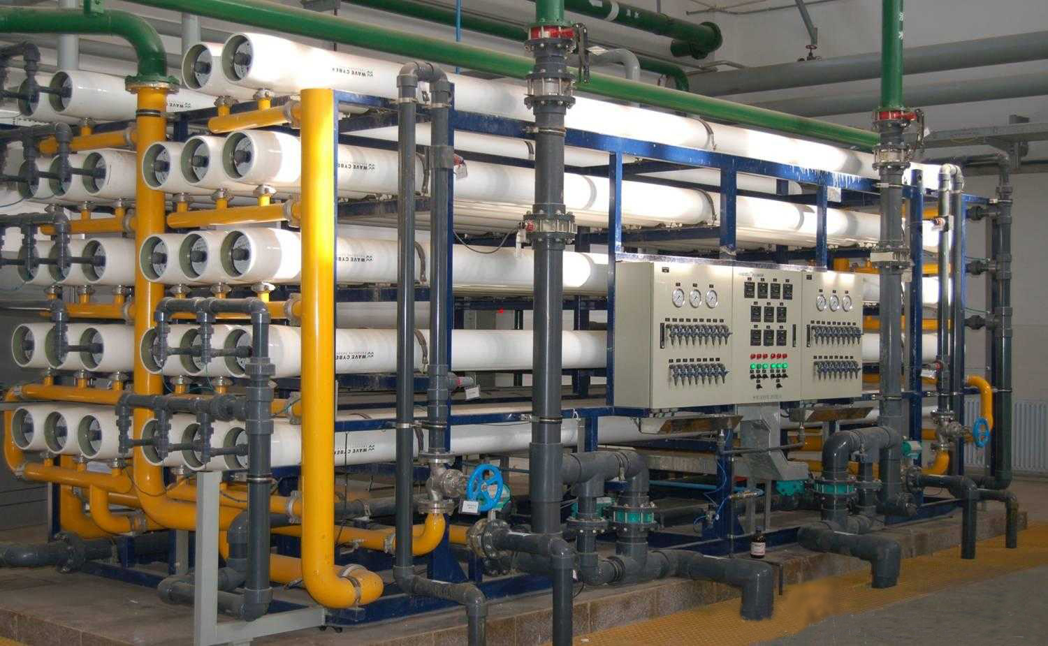 设备简介:50T/H 双级RO反渗透纯水系统。 行业用途:电镀行业表面处理清洗用水 产水水质:小于1μs/cm 设备流程:原水→多介质过滤器→活性炭过滤器→精密过滤器→中间水箱→一级反渗透设备→二级反渗透设备→纯水储水箱→ 纯水泵→后置保安过滤器→用水点